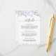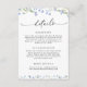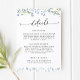 Comparte toda la información importante que tus huéspedes necesitan con esta tarjeta de detalles de boda de diseño. Con delicadas acuarelas, flores silvestres azules y tipografía elegante, este prospecto proporciona detalles esenciales sobre su recepción, alojamiento y sitio web boda. Esta tarjeta está perfectamente coordinada con bodas de temática vegetal, rústica o floral, por lo que es fácil guiar a sus huéspedes sin esfuerzo.