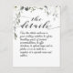 The Details (Los detalles), una tarjeta de gabinete boda de acuarela de lujo que incluye peonías blancas muy detalladas y viñas de eucalipto plateado con una elegante caligrafía de enjambre largo anunciando tus detalles bodas.