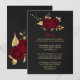 las románticas flores rojas burdeos oscuras y doradas dejan la tarjeta de detalles negros. Los detalles del purpurina se simulan