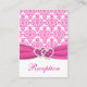 Esta tarjeta de recepción de damasco rosa y blanco tiene un lazo FAUX rosado caliente y un par de rombo y purpurina rosado se unen al broche de corazones. Coincide con las invitaciones de boda que se muestran a continuación. También puede cambiarlo para que sea un mapa o una tarjeta de direcciones cambiando el texto en consecuencia. Si hay otros elementos coincidentes que necesite, envíe su solicitud a niteowlstudio@gmail.com.