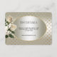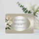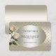 Hermosa tarjeta de gabinete de detalles de corazones de oro de rosas blancas