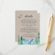 Esta kraft Rocky Mountain boda es perfecta para un boda al aire libre. El diseño presenta un paisaje salvaje pintado de azul y verde con pinos acuarelas, pájaros y montañas sobre un falso fondo de papel kraft claro. Nota: Esto no está impreso en papel kraft real. Es un gráfico de alta calidad hecho para parecer un papel kraft.