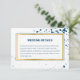 Tarjeta de gabinete boda moderna con mantas de tinta azul marino y borde de aspecto metálico marino y dorado alrededor de toda la información. Un diseño de diseño que es ideal para una pareja minimalista. Utilice estas tarjetas para proporcionar instrucciones y cualquier otro detalle importante que sus huéspedes puedan necesitar, como alojamiento en el hotel, aparcamiento, información de transporte, etc. ¿Necesita más personalización? En "personalizar esta plantilla", simplemente pulse "hacer clic en el personalizar". ¿Preguntas o preocupaciones? Por favor, envíeme un mensaje o utilice la ayuda en directo de Zazzle para diseñadores.