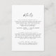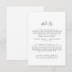Esta moderna tarjeta de gabinete de detalles del boda de guiones es perfecta para un boda minimalista. El sencillo diseño en blanco y negro presenta una tipografía industrial única con un estilo boho moderno. Personalizable de cualquier color. Mantenga el diseño minimalista y elegante, tal como está, o lo personalice añadiendo sus propios gráficos y obras de arte.