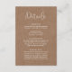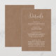 Diseñada para coordinar con nuestra Minimalista Colección Rustica, esta tarjeta de gabinete de detalles de personalizable presenta un tipo de letra clásico blanco sobre un fondo de efecto kraft. Es una colección rústica sencilla y minimalista, muy versátil y adecuada para cualquier temporada de boda. Para una personalización más avanzada de este diseño, por ejemplo, cambiar el diseño, el tamaño de letra o el tamaño del texto, haga clic en el botón "PERSONALIZAR" de arriba. Por favor, contáctame para cualquier pregunta.