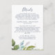 Esta tarjeta de alojamiento con detalles verdes de verano es perfecta para un elegante boda de verano. El diseño botánico presenta una disposición exuberante de eucalipto de acuarela pintada, vegetación y hojas verdes con sutiles brotes de flores rosa rubor.