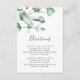 Esta rústica tarjeta del recinto de instrucciones de lavanda es perfecta para un boda al aire libre sencillo y elegante. El diseño floral incluye hojas de eucaliptos acuáticas y vegetación con brotes de flores silvestres moradas.