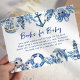 Tarjetas Náuticas para la petición de un libro de ducha con acuarela que incluyen exquisitas representaciones acuáticas de encantadoras criaturas marinas, un espléndido barco, un sólido ancla y un mensaje de "libros para bebés".