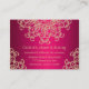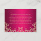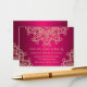 Una hermosa fucsia rosa y boda de oro con tonalidades de joyas o cualquier otra tarjeta especial de recepción con un sari ornamental de inspiración india exótica con un diseño de loto y de quemaduras florales. Esta elegante y hermosa y moderna tarjeta de alojamiento de lujo de estilo indio es perfecta para cualquier ocasión formal con una temática de aladín o noches marroquíes indonesias del este asiático. Diseño © Chrissy H. Studios, LLC. Todos Los Derechos Reservados.