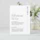 Invite a su boda con esta sencilla y moderna tarjeta de gabinete de detalles de personalizable, que cuenta con una fuente limpia sobre fondo blanco. Esta invitación a la boda es perfecta para cualquier temporada. Los tamaños de letra y el texto pueden editarse más. Por favor, siéntase libre de contactarme si tiene alguna pregunta.