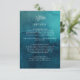 Esta tarjeta de envoltorio con detalles de acuarela oceánica es perfecta para su simple boda de boho tropical. Está diseñado con minimalistas hojas tropicales blancas y un impresionante fondo azul-verde oscuro.