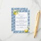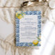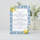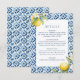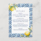 Esta tarjeta de gabinete con detalles de limón boda es perfecta para un boda mediterráneo. Esta tarjeta de detalles boda cuenta con hermosos limones acuáticos y azulejos azules mediterráneos que se adaptarán perfectamente a su boda de destino, boda italiano o boda costero de Amalfi. Consulte la invitación a la boda de limón mediterráneo en la colección.