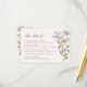 Boho Whimsical Wildflower Floral Sage Greenery Botanical Elegant Simple Boda Detalles Tarjeta de Gabinete. Flores silvestres de estilo bohemio ramo carta minimalista con elegante y simple pradera boho floral salvia verde botánicos en acuarela impresa a mano. El ramo de flores acuáticas de la parte de atrás es perfecto para bodas boho y bodas rústicos. Tarjeta de detalles editable para primavera, verano, otoño (otoño) y bodas de invierno.