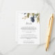 Este boda de vegetación de otoño le ofrece la tarjeta de alojamiento perfecta para una boda en otoño. El moderno diseño rústico incluye hojas azul marino, verde salvia y dorado con brotes de flores azules oscuras.