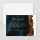 Impresionante tarjeta de gabinete de detalles de boda de color de agua verde azulada y quemada naranja.