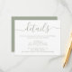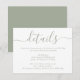 Proporcione a sus invitados con detalles importantes con esta elegante tarjeta de inclusión de boda con fuente de letra moderna en verde salvia. Artículos coincidentes disponibles. Solicitudes personalizadas son bienvenidas.