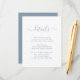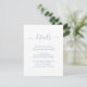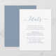 Proporcione a sus invitados los detalles importantes con esta elegante tarjeta de inclusión para boda de azul polvoriento moderno con una fuente de escritura moderna. Artículos coincidentes disponibles.