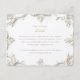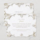 Esta sofisticada tarjeta boda presenta un impresionante diseño floral barroco. Los intrincados patrones de marfil y crema adornan un fondo blanco prístino, realzado por un guión elegante en negro y oro. Los lujosos elementos de diseño crean un marco intemporal y regular alrededor del texto, lo que hace que este conjunto sea perfecto para una celebración de boda de alta categoría. Ideal para las parejas que buscan añadir un toque de elegancia y opulencia a su día especial, este conjunto ofrece todo lo necesario para invitar e informar a sus huéspedes.