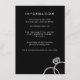 Un monograma moderno recibe el brillo con anillos de boda plateado entrelazados y un texto personalizado que hace de ésta una nueva invitación de boda clásica con texto simplificado en blanco y negro limpio. Personalice todo el texto de esta información de invitación inserte la tarjeta y ayude a dirigir a su invitado a un bloque reservado de habitaciones de hotel o información del sitio web.