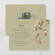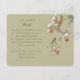 Esta tarjeta de información boda es una verdadera pieza de arte, con un par de loros en una sinfonía de verde jade y azul zafiro, encaramada en una percha dorada ornamentada en medio de una cascada de orquídeas maliciosas. Las flores florecen en tonos de melocotón suave, un delicado rubor y un marfil cremoso, todo ello rodeado de un sofisticado fondo de oliva. El reverso de la tarjeta ofrece un guión limpio y elegante sobre un fondo armonioso, que proporciona a los huéspedes detalles esenciales como direcciones, detalles de la ceremonia y preferencias de regalos, todo ello haciendo eco del motivo tropical opulento.