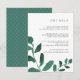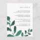 Diseñada para coordinar con nuestra colección Pressed Botanical boda en Esmeralda, esta tarjeta de información de huéspedes en color verde y blanco del bosque de moda incluye brotes de vivos colores de agua verde, encuadernación con los detalles de su boda clave, como alojamiento de hotel, información de recepción de bienvenida, sitio web y más. Agregue el texto del personalizado utilizando los campos proporcionados y utilice la función Personalizar para ajustar las fuentes, tamaños y espaciado.