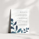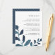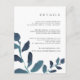 Diseñada para coordinar con nuestra colección Pressed Botanical boda en Ultramarine, esta tarjeta de información de moda azul y blanca incluye brotes de vivos colores de agua verde azulada oscura, enmarcando sus detalles clave de los bodas, como alojamiento de hotel, información de recepción de bienvenida, sitio web y más. Agregue el texto del personalizado utilizando los campos proporcionados y utilice la función Personalizar para ajustar las fuentes, tamaños y espaciado.