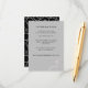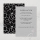 Un monograma moderno recibe el brillo con anillos de boda plateados entrelazados y un texto personalizado que hace de esta una nueva invitación casera clásica con texto optimizado en blanco, negro y gris limpio. Personalice todo el texto de esta información de invitación inserte la tarjeta y ayude a dirigir a su invitado a un bloque reservado de habitaciones de hotel o información del sitio web.