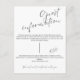 Ayude a sus huéspedes a mantenerse informados con esta elegante tarjeta de información sobre invitados de boda. Con una elegante combinación de letra manuscrita y serif, esta tarjeta de gabinete está diseñada para complementar su moderna suite boda. Personalizar fácilmente con consejos de viaje, detalles de alojamiento, instrucciones RSVP o el sitio web de su boda. Una adición perfecta a invitaciones de boda formales y minimalistas por igual.