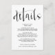 Soñador se encuentra con rústico con esta tarjeta de detalles de boda simple y elegante. Agrega tus propias palabras en la plantilla debajo del hermoso título de letra. Esta tarjeta es parte de nuestra gama 'Anne & Oliver' - ¡consulta la gama completa en nuestra tienda!