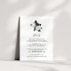 Diseñada para coordinar con nuestra colección de bodas Grandiflora, esta tarjeta de información de huéspedes floral y botánica de color verde presenta un par de elegantes flores de magnolia blanca y hojas verdes que cubren los detalles clave de sus bodas, como alojamiento en el hotel, información de recepción de bienvenida, sitio web y más. Agregue el texto del personalizado utilizando los campos proporcionados y utilice la función Personalizar para ajustar las fuentes, tamaños y espaciado.