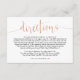 El sueño se encuentra con el rústico con esta carta de direcciones de boda simple y elegante en oro rosa. Agregue su propia redacción a la plantilla debajo del bonito encabezado del guión. Esta tarjeta forma parte de nuestra gama "Anne & Oliver" - mira el rango completo de nuestra tienda!