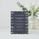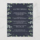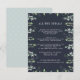 Diseñada para coordinar con nuestra colección de bodas Winter Sage, esta elegante tarjeta de información botánica ofrece un borde de vegetación y follaje boscosos en verde helado, rodeando los detalles clave de su boda, como alojamiento de hotel, información de bienvenida, sitio web y más. Las letras blancas en un rico fondo azul marino le dan un toque de lujo a las bodas de invierno. Agregue el texto del personalizado utilizando los campos proporcionados y utilice la función Personalizar para ajustar las fuentes, tamaños y espaciado.