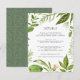 Diseñada para coordinar con nuestra colección de bodas Wild Meadow, esta nueva tarjeta de información botánica verde contiene un borde de vegetación que rodea los detalles clave de sus bodas, como alojamiento en el hotel, información de recepción de bienvenida, sitio web y más. Agregue el texto del personalizado utilizando los campos proporcionados y utilice la función Personalizar para ajustar las fuentes, tamaños y espaciado.
