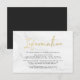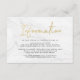 Tarjetas de información de boda elegantes y modernas con fuente de letra dorada falsa, fondo de mármol blanco y espacios para tus detalles personalizados de boda. El dorso de las tarjetas de información de boda doradas se puede cambiar a un color de tu elección con la herramienta de personalización.