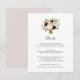Diseñada para coordinar con nuestra colección de bodas Rubor Romance, esta elegante tarjeta de información floral acuática incluye un ramo de marsala de color burdeos, flores rosa y marfil, sobre sus detalles principales de los bodas, como alojamiento en el hotel, información de bienvenida, sitio web y más. Agregue el texto del personalizado utilizando los campos proporcionados y utilice la función Personalizar para ajustar las fuentes, tamaños y espaciado.