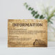 Tarjeta informativa de Boda de granero para una boda rural con luces de cuerda y un granero sobre un fondo rústico de madera. ¡Perfecto para una boda de campo! Puede mover o borrar el granero, las luces y la palabra "Información". Puede utilizar la tarjeta como tarjeta de recepción o detalles. Es la tarjeta extra que necesitas para toda la información detallada como tu sitio web, información de registro, direcciones, etc. Puede agregar una imagen de un mapa a la parte posterior de la tarjeta. ¡O usar la parte de atrás para más información o una foto de la pareja! Esta tarjeta coincide con una colección de mi tienda.