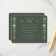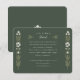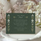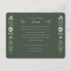 Esta exquisita tarjeta de información boda presenta un rico fondo verde cazador, bordeado por una columna simétrica de delicados ilustraciones florales en tonos crema y verde. La parte central de la tarjeta es el título elegantemente escrito "Los detalles más finos", invitando a los invitados a aprender más sobre los detalles del día de la boda. Los ilustraciones botánicos evocan un entorno natural sereno, ideal para las parejas que aprecian la belleza de la flora y la naturaleza. El uso de acentos dorados contra el verde oscuro aporta un toque de sofisticación y lujo. Esta tarjeta no es sólo una adición práctica a su suite boda, sino también un gran placer que encarna la atención y belleza de su día especial.