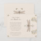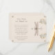 Añada un toque de elegancia natural a su boda con esta preciosa tarjeta de información con un detallado ilustracion de libélula rodeado de delicados elementos botánicos. El diseño se caracteriza por sus tonos beige y crema suaves, acompañados de un acento floral verde y amarillo dorado. Graceful sprigs de flores amarillas y de frondosas viñas enmarcan la libélula, simbolizando armonía y conexión. La parte trasera de la tarjeta ofrece un amplio espacio para los detalles adicionales del boda, lo que garantiza a los huéspedes una buena información. Esta tarjeta es ideal para bodas de inspiración natural, rústica o vintage, que combinan encanto y practicidad en un diseño intemporal.