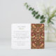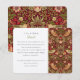 Esta tarjeta de información boda, decorada con el estilo de Strawberry Thief, es una forma deliciosa de proporcionar a sus huéspedes todos los detalles más finos de su día especial. El famoso diseño de William Morris añade un toque lujoso e histórico a la carta, con su rico tapiz de aves, frutas y flores. La tarjeta ofrece un espacio para compartir información esencial como direcciones, detalles de la ceremonia de la iglesia y preferencias de regalo, asegurando que los invitados estén bien informados y puedan disfrutar del día sin ningún tipo de contratiempos. El diseño clásico es perfecto para aquellos que aprecian la belleza del movimiento de Artes y Oficios y desean incorporar estos detalles en su narrativa boda.