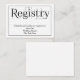 Una solución sencilla y elegante, esta tarjeta de información de registro en blanco y negro de impresión Curly es ideal como una inclusión en su suite de invitados a la boda.