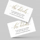 Utilice las tarjetas de visita para comunicar de forma fácil y eficiente los detalles de RSVP y boda. La hermosa caligrafía en un falso purpurina de oro le da un toque de elegancia.
