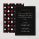 Sencilla y elegante, esta tarjeta del recinto para la invitación a la boda con temática del casino cuenta con los cuatro trajes de cartas en rojo y blanco clásico sobre negro. El corazón ha sido perforado por flechas como un guiño descarado a ser golpeado por el amor. En la actualidad, se le da formato para obtener información sobre viajes, pero se cambia fácilmente para adaptarla a sus necesidades.
