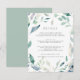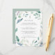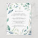 Diseñada para coordinar con nuestra colección de bodas de Mountain Meadow, esta elegante tarjeta de información botánica de primavera incluye un borde de follaje acuático verde y flores violetas que rodean los detalles clave de sus bodas, como alojamiento de hotel, información de recepción de bienvenida, sitio web y más. Agregue el texto del personalizado utilizando los campos proporcionados y utilice la función Personalizar para ajustar las fuentes, tamaños y espaciado.