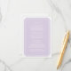 Tarjeta de información/direcciones de boda Simply Elegant moderna y chic con un diseño elegante de emblema de boleto lavanda. Este diseño clásico y elegante es fácil de personalizar con los detalles de su boda. Para más opciones de personalización, haga clic en Personalizar.