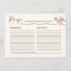 ¡Esta receta es la adición perfecta a cualquier cocina! Esta carta presenta un estilo boho minimalista, con sencillos diseños de flores silvestres. Esta tarjeta de Receta coincide con las invitaciones a la ducha de novias que se encuentran en mi tienda de Zazzle, y es tan divertida actividad a la ducha de novias! La novia puede conservar las recetas de los más cercanos a ella y usarlas en los próximos años.
