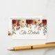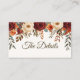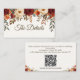 Haga que su papelería boda se complemente con esta elegante tarjeta de inscripción de boda rústica. Diseñada con rosas de color burdeos, dahlias naranjas quemadas, vegetación eucaliptus y hojas doradas de otoño, esta tarjeta es perfecta para bodas de otoño. Completamente personalizable, puede agregar su código QR, información adicional para los invitados (como sitio web boda, enlace RSVP, direcciones o registro de regalos), o cualquier texto personalizado. Su diseño rústico y romántico complementa invitaciones, tarjetas RSVP y otras papelería boda de la misma colección. Esta tarjeta de gabinete es práctica y elegante, lo que la convierte en el toque final perfecto para su suite nupcial de otoño.