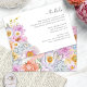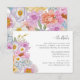 Tarjeta De Alojamiento Para Detalles Del Boda Boho. Comparte información importante del día de la boda con estilo con esta audaz y hermosa tarjeta de detalles horizontales, perfecta para celebraciones de primavera, verano o otoño. Un ramo lateral vibrante de flores de acuarela —incluidas las peonías onduladas y de fuchsia, acentos dorados amarillos y naranjas, rosas de lavanda púrpura, delfino azul, margaritas alegres, flores silvestres y una delicada mariposa— te da un color alegre a tus detalles. En la parte posterior se muestra un patrón floral coordinado que crea un aspecto cohesivo y pulido. Elevar su suite de invitados con un diseño que es tan práctico como impresionante, para dar vida a sus detalles con un toque personal.