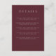 Recepción Tarjeta de inscripción de detalles del Boda Burgun