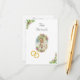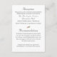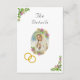El frente de diseño presenta una hermosa imagen de Nuestra Señora de Fátima como oval en el centro. Imagen de delicadas rosas rosas rosas rosas y blancas forma un marco. La imagen de los anillos de boda dorados unidos se muestra debajo y a la izquierda del óvalo. Cabecera de personalizable mostrada en un elegante tipo de letra Nuptial. Bordeando las esquinas superior izquierda e inferior derecha están las imágenes de rosas y vegetación. Reverse muestra el texto en un tipo de letra plateado. El encabezado de recepción y el encabezado de alojamiento se muestran en el mismo tipo de letra Nuptial. La información que aparece a continuación se muestra en una impresión clara y fácil de leer. Diseñado para coordinar con la "Virgin Mary Catholic Boda Suite".