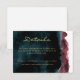 Impresionante tarjeta de gabinete de detalles de boda de color agua verde azulada y burdeos.